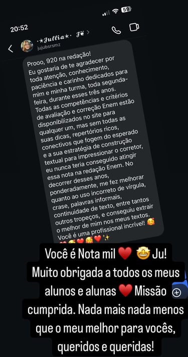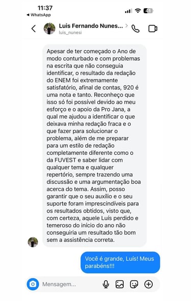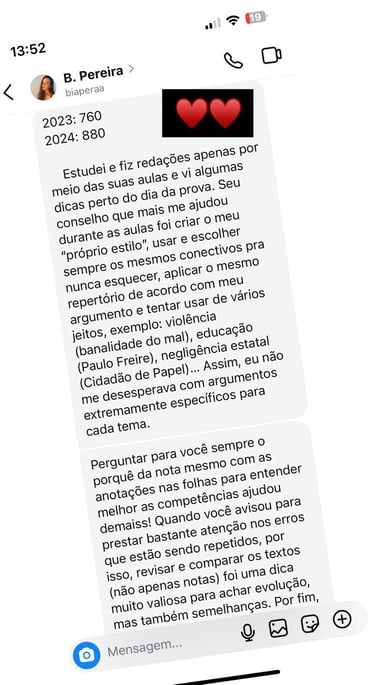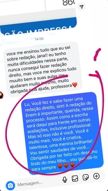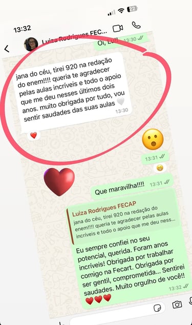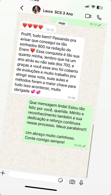 Sou professora de Redação e especialista em Escrita Aplicada pela PUC/SP, com mais de vinte anos de experiência, ajudo jovens a superarem o medo e dominarem a redação para o Enem com uma abordagem descontraída e transformadora alcançando resultados.